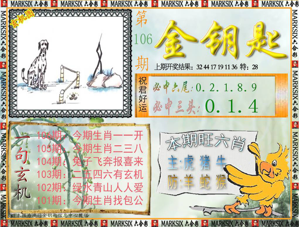 106期:【马首是瞻】♠【单双各四肖】精选高手 |