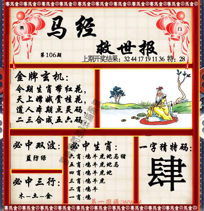 106期:【马神天王】♠【一尾二码】精选高手 |