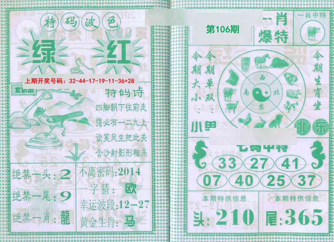 106期:【财神秘籍】♠【单双中特】核准出售 |