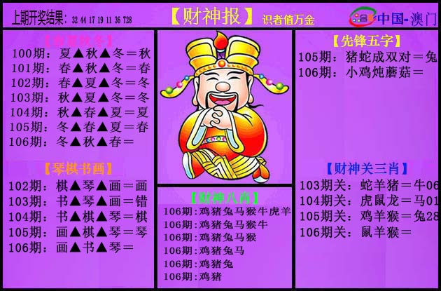 106期:【澳彩经理】♠【家野中特】精选高手 |